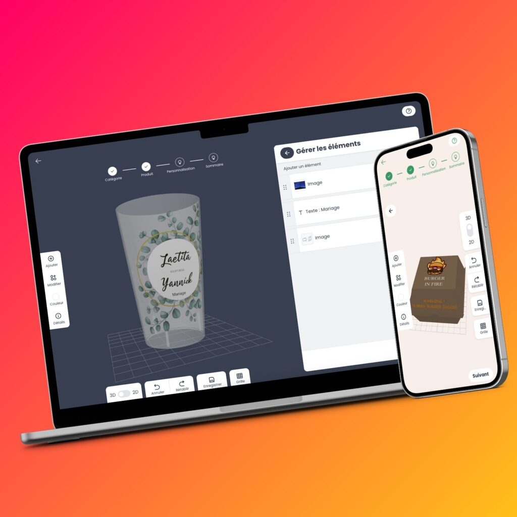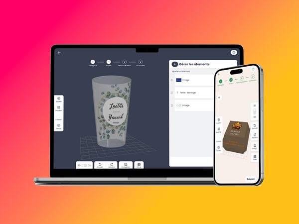 Boost your conversions by +40% with an immersive experience where customers customize directly on 3D objects. Say goodbye to 2D uncertainties, switch to ultra-realistic personalization for print-on-demand and web-to-print.